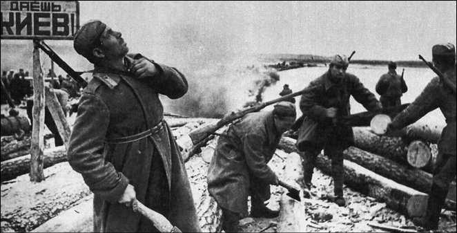 Саперы готовят переправу через Днепр. Ноябрь 1943 г.