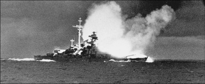 «Родней», имевший девять 406‐мм орудий, расположенных в трех башнях, вел ураганный огонь. Ему помогал «Кинг Джордж V». Вскоре после 09.00 бронебойные снаряды английских кораблей начали причинять «Бисмарку» большие повреждения.