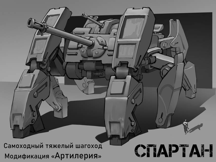 Тем не менее, «Спартан» — довольно-таки большая или, что правильнее, высокая машина, но медленная. Честно говоря, я слабо представлял, какой от нас будет толк в качестве «сопровождения». Такую штуку охранять должны тяжи, вооруженные стрелковым оружием, да и сам «Спартан» мог быть вооружен не только дальнобойными орудиями, но и всякими пулеметами, мог быть «адаптирован» для работы на ближнюю дистанцию, по мелким целям. Короче говоря, все, что от нас требовалось — бежать рядом с этой махиной, и все.