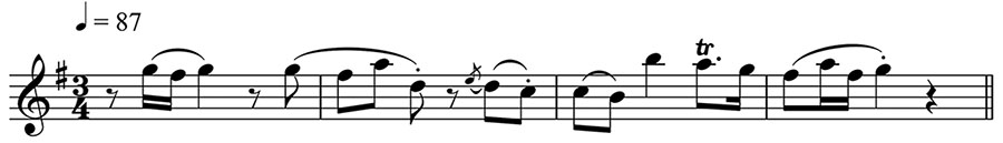 Рис. 4.10. Второй вариант темы пожилого аристократа в исполнении скрипки во время экшен-сцены