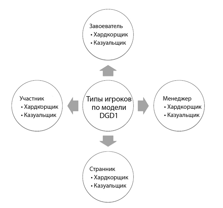 Существует несколько теоретических «моделей», описывающих предпочтения играющих людей. Как правило, они основаны на впечатлениях игроков, собранных посредством анкет, примерно как это делается в конце фокус-тестирования. Писатель и первопроходец в мире игрового дизайна Ричард Бартл разделяет игроков на четыре психотипа: социальщики, киллеры, исследователи и карьеристы. Его модель, созданная в 1996 году, не рассматривает жанровые предпочтения различных психотипов, поскольку Бартл сфокусировался на аудитории только одного типа игр – текстовых многопользовательских миров, или MUDs. Другой исследователь, Ник Йи, в 2007 году создал более общую классификацию, опираясь на изучение игроков MMORPG. Но есть и третья модель, в рамках которой изучались как типы игроков, так и предпочитаемые этими типами игровые жанры. Для композиторов наиболее интересна именно эта модель, ведь мы хотим писать музыку, которая понравится целевой аудитории проекта. Рассмотрим классификацию игроков согласно этой модели.