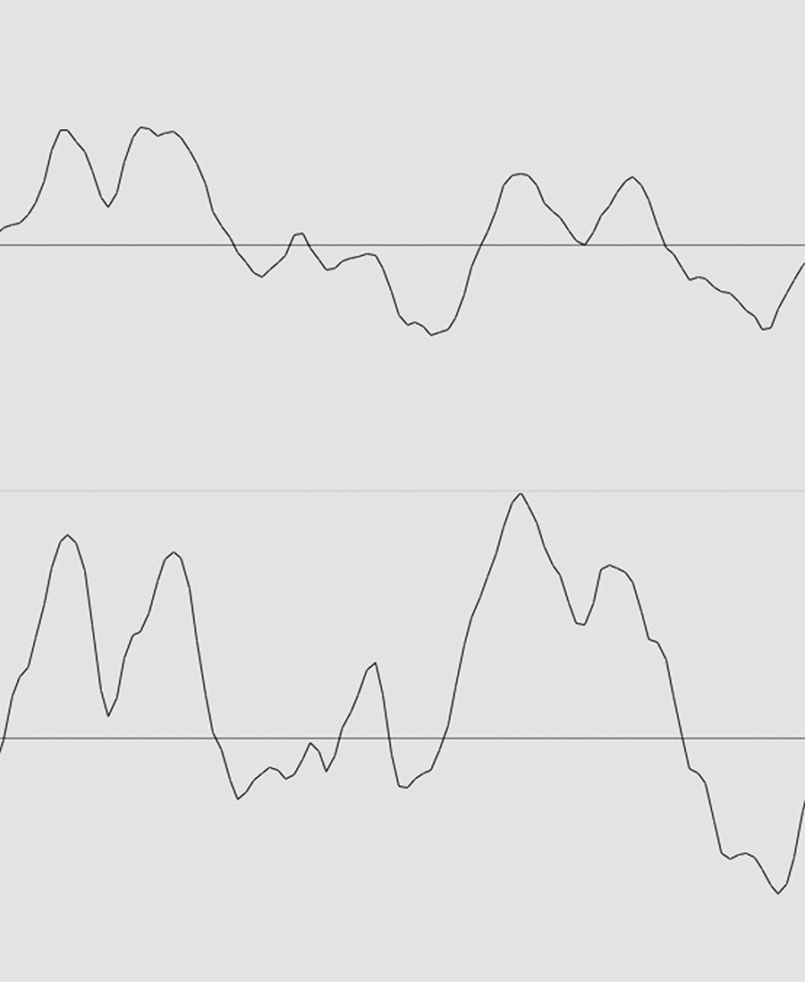 Всем известно, что в программах для редактирования звуковых файлов предусмотрена возможность показать звуковой сигнал в виде формы сигнала. Можно настроить масштаб изображения таким образом, чтобы эта рваная фигура приняла вид кривой, которая движется слева направо вдоль горизонтальной оси. Кривая постоянно изгибается, часто пересекая горизонтальную ось. В этих точках пересечения волна имеет нулевую амплитуду, а сами они называются точками пересечения нуля. Если мы посмотрим стереозвук, то увидим две формы волн, которые двигаются вдоль оси параллельно, причем у каждой будут свои точки пересечения нуля (точки пересечения с горизонтальной осью у двух этих волн совпадают очень редко).