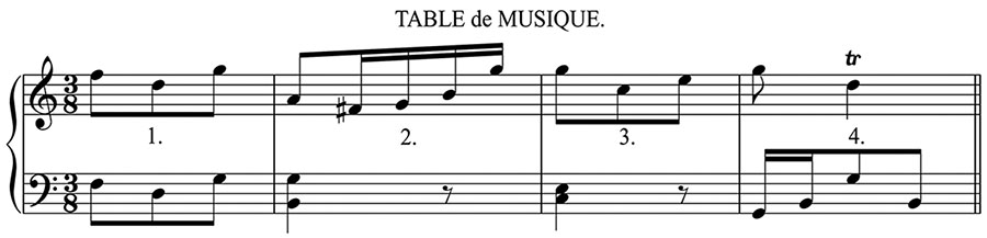Рис. 11.1. Четыре такта музыки из музыкальной игры в кости Моцарта. Каждому такту соответствовал порядковый номер