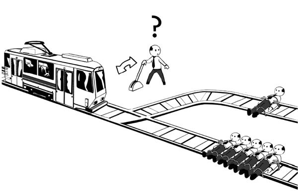Представьте мчащийся поезд, который грозит задавить пятерых человек, привязанных к рельсам. В первом случае вам предлагается спасти их, переведя стрелки на линию, где привязан только один бедолага.