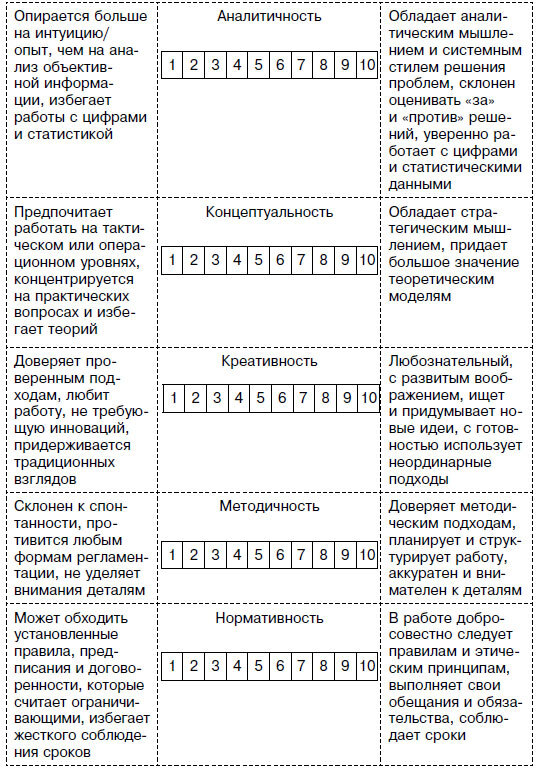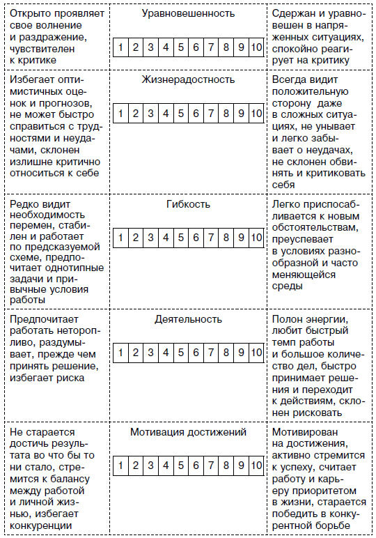Ваша задача – по каждому пункту получить от сотрудника оценку от 1 до 10. Как только вы это сделаете, считайте, что профиль личности у вас в кармане. Однако, как гласит известная пословица, «легко сказать, да тяжело сделать». Если вы задумаетесь, то увидите, что на большую часть этих вопросов не принято отвечать честно. Есть люди, которые лучше работают в роли подчиненных, но вам об этом никогда прямо не расскажут, даже если сами себе в этом признаются. Не сообщат вам они и о своей раздражительности, впрочем, как и о нежелании добиваться результата сверхусилиями. Поэтому если вы попросите сотрудников проставить баллы, то в итоге получите армию одинаковых супергероев, а не профили уникальных личностей. Но для того и существует методология, чтобы вытаскивать на поверхность то, что не стремится там оказаться. В таком случае можно воспользоваться услугами агентств, специализирующихся на тестировании сотрудников и выявлении личностных черт.