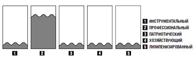 Очень распространенный тип мотивационного профиля, к нему принадлежат 30 % от всей массы сотрудников. Для этих людей не так важно, какую работу выполнять, не так важен уровень дохода, не так важны цели и профессиональные смыслы, им важно быть как все. Люмпенизированный тип стремится не высовываться, избежать ответственности, минимизировать свои усилия там, где получится их минимизировать. Если можно чего-то не делать, и никто этого не проконтролирует, то он с радостью избежит работы. Поэтому для таких сотрудников важна не столько мотивация, сколько контроль. Без него они будут стремиться сократить свои усилия до нуля.