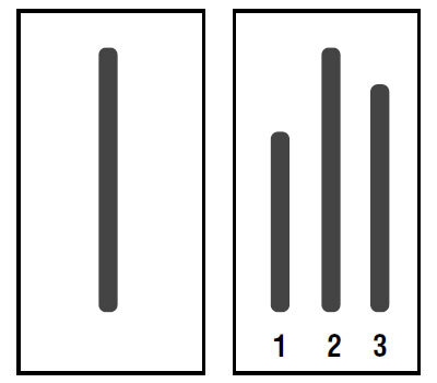 Чтобы продолжить раскрывать особенности работы симулякра справедливости, нам нужны факты, обличающие нашу плавающую позицию по морально-этическим вопросам. Поэтому начнем мы с эксперимента, который провел психолог Соломон Аш, желавший понять, насколько в целом устойчивы наши суждения. Его опыт и сейчас считается классическим, хотя был обнародован еще в 1951 году и, как вы понимаете, за 70 лет прошел превосходную проверку временем. Условия исследования были довольно простыми. Группу из семи студентов пригласили в аудиторию под предлогом «психологических экспериментов по визуальному восприятию». Там испытуемым показали 18 пар больших белых карточек, вроде приведенных ниже.