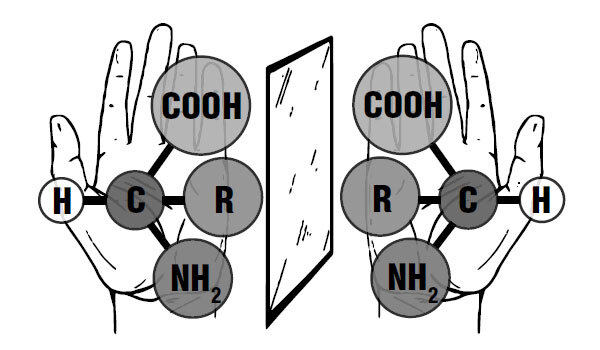 Молекула аминокислоты и ее зеркальный антипод