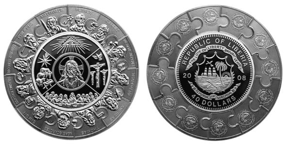 «12 апостолов» («Апостольский талер») – самая красивая монета. Либерия, 2007 г.