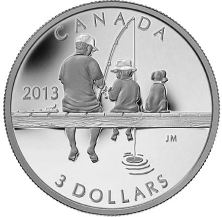 3 канадских доллара. «Рыбалка» (реверс). Канада, 2013 г. Серебро
