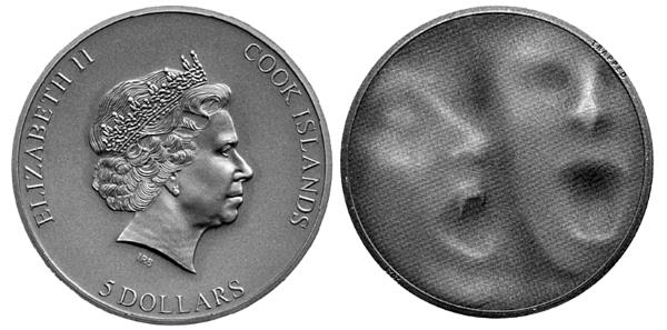 Зато совсем другие эмоции, близкие к ужасу, вызывает выпущенная в конце весны 2021 года монета Островов Кука стоимостью 5 новозеландских долларов. Обстановка в мире, что ли, повлияла?.. Как пишут издатели, эта невероятная серебряная монета весом в 1 унцию (31,2 г) «олицетворяет универсальный кошмар и страх физически или ментально оказаться в безвыходной ловушке». Монета имеет мрачный серо-чёрный оттенок, красивый (но так и хочется дописать: «угрожающе-красивый») сетчатый дизайн благодаря уже известной нам по предыдущим главам технологии «SmartMinting», качество отделки под старину «Antic Finish». На реверсе изображение условного вампира и его жертвы сопровождается в легенде лишь цифрами года «2021» и коротким словом «Trapped» («В западне»). Эта «монета ужасов» продолжила серию, начатую в 2019 году компанией «Coin Invest Trust» (CIT). Представляете, соберётся в коллекции их несколько штук таких, одна кошмарнее другой! Бррр, на ночь такой нумизматикой лучше не заниматься!..