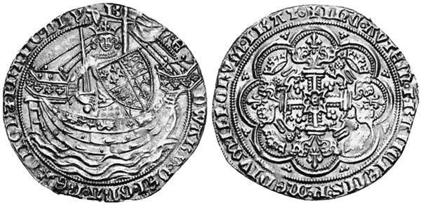 Нобль Эдуарда III (послужил образцом для корабельника). Монетный двор Тауэр (Лондон), 1354–1355 гг. Золото (6,69 г, 32 мм). Аукцион «Classical Numismatic Group», 2020 г. $ 5000
