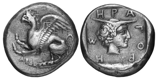 О, как! Но если б автор этой сенсации удосужился ознакомиться с картой и узнать, где Абдеры (ныне – муниципалитет Авдира в Восточной Македонии и Фракии), где Самос, место рождения (восточная часть Эгейского моря), а где Кротон, место основания философско-этической школы, и Метапонт, место смерти (юг Италии), он бы задумался: с какой стати в далёкой Абдере стали бы помещать на монету портрет чужого малоизвестного философа (ведь слава Пифагора прогремела не сразу, а нарастала с веками)? Ну ладно, допустим, в нумизматике всякое бывало… Так давайте поглядим на монету!
