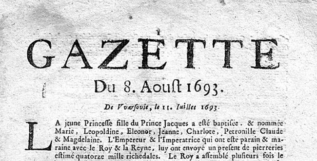 Заголовок «La Gazette» от 8 августа 1693 г.