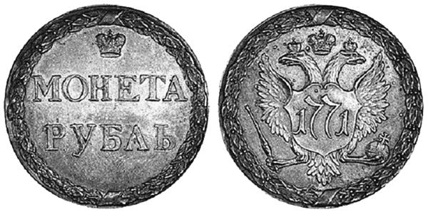 «Пугачёвский рубль». Российская империя, 1771 г. Серебро