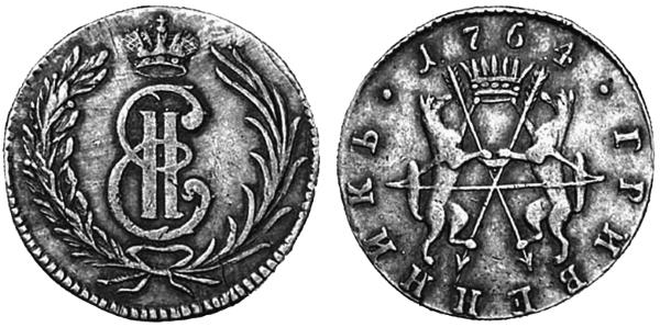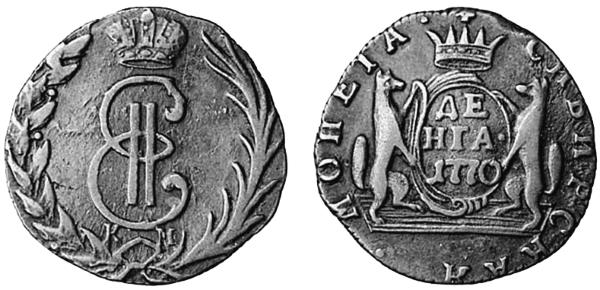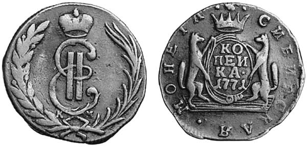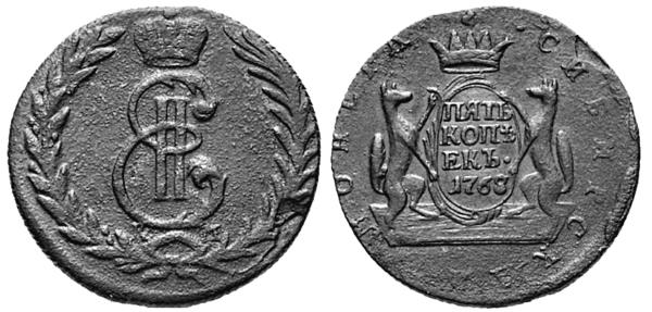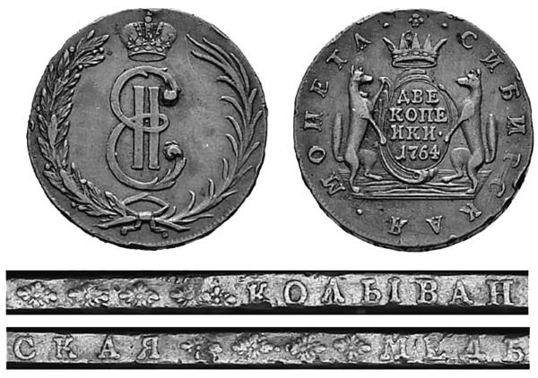 Чеканка «сибирских» монет – интересная и во многом непонятная страница отечественной истории. Достаточно сказать, что по их поводу у исследователей до сих пор нет единого мнения. Одни считают, что фактически чеканка началась в 1766 году (несмотря на дату императорского указа тремя годами ранее). Названный выше И.Г. Спасский относит начало чеканки к 1763 году, но отрицает наличие серебра в большинстве подлинных экземпляров (ещё одна загадка). А.Н. Дьячков и В.В. Уздеников в конце 1970-х годов решили, что начало чеканки связано с дороговизной доставки готовой монеты в Сибирь с существовавших в европейской части монетных дворов. Они считали монеты 1764 года отчеканенными в Петербурге в качестве образцов для Колыванского (Нижне-Сузунского) монетного двора. Но очень скоро В.В. Уздеников изменил мнение и назвал вообще все монеты 1763 и 1764 годов подлинными, отчеканенными для Сибири в Петербурге. Однако ещё чуть позже в его труде «Монеты России» большинство экземпляров этих годов описаны как новоделы…