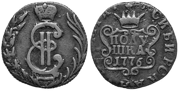 А мы вернёмся к общепринятому описанию. «Словарь нумизмата» В. Гладкого сообщает, что эти монеты выпускались в Сибири Колыванским (Нижне-Сузунским) монетным двором в 1763–1781 годах. «Они чеканились из меди с примесью серебра, и потому монетная стопа была поднята до 25 руб. из пуда, тогда как общегосударственные медные монеты чеканились на 16 руб. из пуда меди. Имели право обращения только в Сибири».