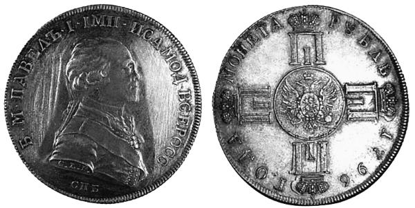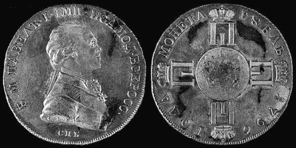 Заняв долгожданный трон, император Павел I Петрович (1754–1801) в числе прочих новшеств провёл реорганизацию монетного дела и, в частности, отказался от давней традиции чеканки портретов царствующих особ на монетах с крупными номиналами. Павел стал императором 6 (17) ноября 1796 года, и на Санкт-Петербургском монетном дворе сразу же озаботились изготовлением новых образцов денег на замену монет Екатерины II. Достаточно скоро император лицезрел свой профиль на пробных рублёвых монетах с датой «1796».