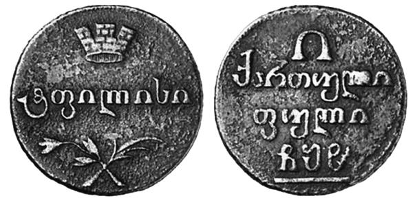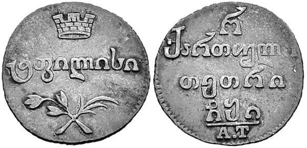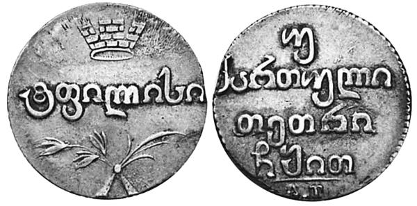 Во второй половине XVIII века в грузинской политике появляется русский фактор. Сближение с Россией стали воспринимать как единственный способ спасения от мусульманского владычества персов и турок. Ираклий II (1720–1798), царь восточногрузинского царства Картли-Кахети, неоднократно обращался к Екатерине II с просьбой об установлении протектората над его владениями для спасения от турок. В 1783 году, одновременно с присоединением Крыма к России, был подписан Георгиевский трактат, устанавливавший российский протекторат над царством Картли-Кахети. На медных грузинских монетах (бисти, полубисти и пули) появляется изображение двуглавого орла. Надписи на монетах остались на арабском языке. Год чеканки указывался и по грузинскому летоисчислению, и по юлианскому календарю.