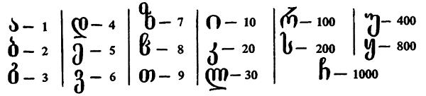 Буквенное обозначение чисел на монетах Грузии. По В.В. Узденикову