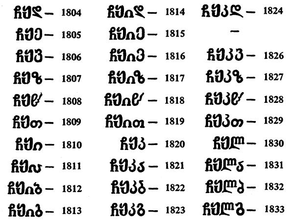 Обозначение дат на монетах Грузии буквами алфавита. По В.В. Узденикову