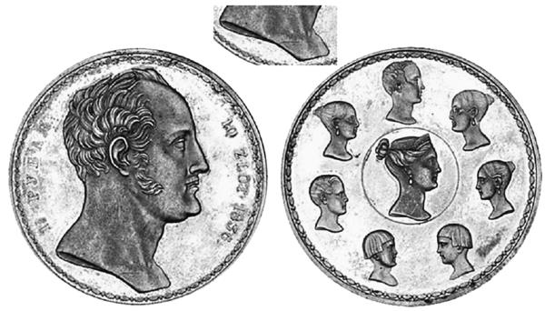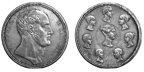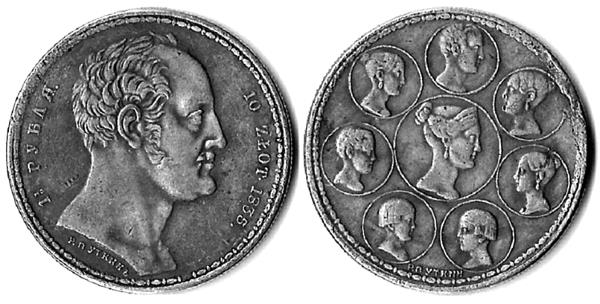 Идею выпуска оригинальных «семейных» рублей Канкрину подал российский посол в Мюнхене – князь Григорий Иванович Гагарин. В сентябре 1835 года он выслал министру финансов для ознакомления пятнадцать талеров, которые тогда чеканились в Баварии по приказу короля Людвига I (правил с 1825 по 1848 год). Из присланных баварских талеров более всего Егора Францевича заинтересовала оригинальная монета 1828 года, на аверсе которой было изображение короля, а на обороте – портреты королевы Терезы и королевских детей – кронпринца Максимилиана (будущего короля Баварии Максимилиана II, с 1848 по 1864 год), принца Отто (будущий первый король Греции, с 1831 по 1862 год), принца Луитпольда (позднее стал отцом будущего короля Баварии Людвига III, с 1913 по 1916 год), «простых» принцев Адальберта и Хильдегарда и принцесс Матильды, Адельгунды и Александры.