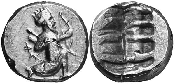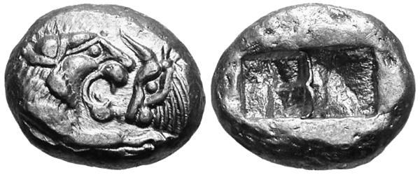 Сикль. Аверс типа I. Сардис (?), империя Ахеменидов, 520–505 гг. до н. э. Серебро