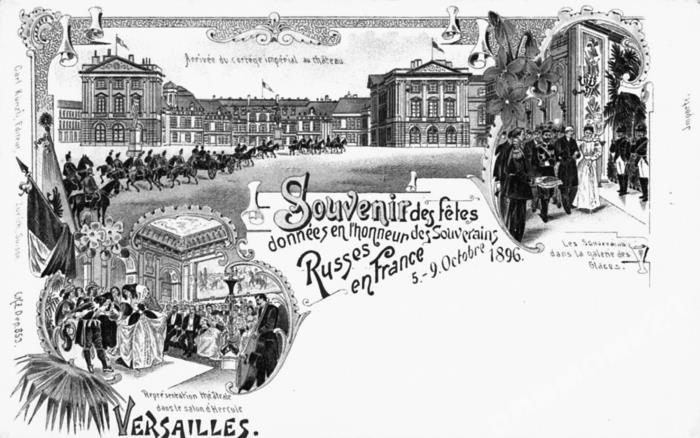 Одна из открыток в честь визита императорской четы во Францию, 1896 г.