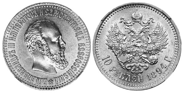10 рублей (империал дореформенный), 1894 г. (12,9 г)