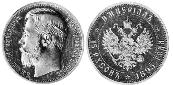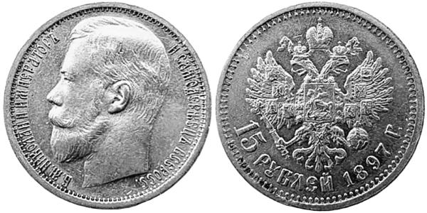 15 рублей (после реформы), 1897 г. (12,9 г)