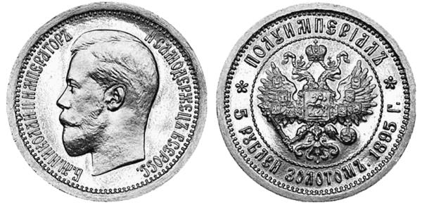 5 рублей (донативная монета, полуимпериал дореформенный), 1895 г. (6,45 г)