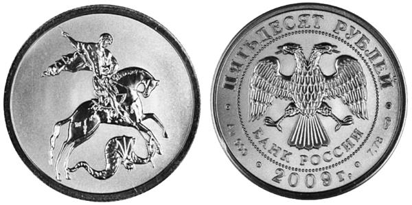 50 рублей. «Георгий Победоносец». СПМД, 2009 г. Золото (7,89 г, чистого металла 7,78 г, 22,6 мм)