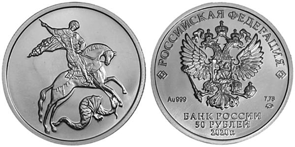 50 рублей. «Георгий Победоносец». ММД, 2020 г. Золото (7,89 г, чистого металла 7,78 г, 22,6 мм)