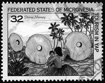 Каменные деньги. Почтовая марка Микронезии, 32 цента, 1996 г.