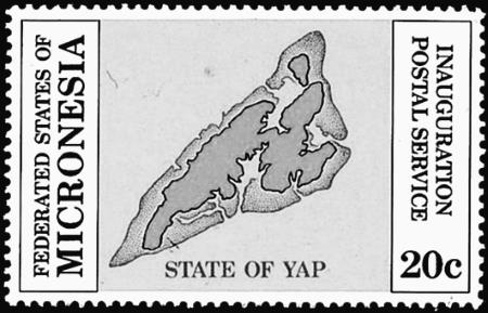 Карта штата Яп. Почтовая марка Микронезии, 20 центов, 1984 г.