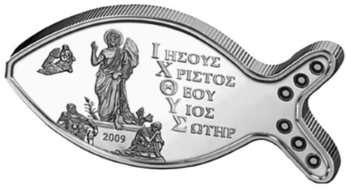Одновременно с «цыплёнком» выпущена и другая монета в форме пасхальной рыбы. Также номиналом 5 новозеландских долларов из серебра 999-й пробы, тиражом 5000 экз. На реверсе позолоченная статуя Христа и текст по-гречески: «IΗΣΟΥΣ / ΧΡIΣΤΟΣ / ΘΕΟΥ / ΥIΟΣ / ΣΩΤΗΡ» (буквально: «ИИСУС / ХРИСТОС / БОГ / СЫН / СПАСИТЕЛЬ»).