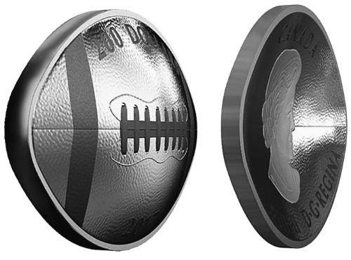 Мяч для регби (Канада, 2017 год исполнение в золоте и серебре);