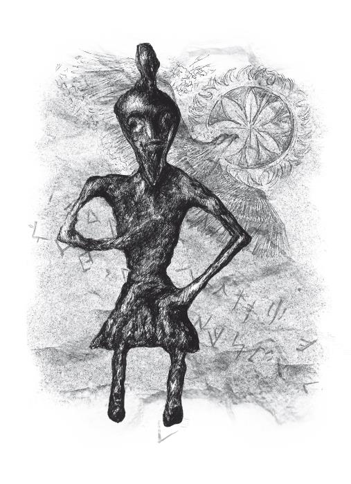 Переступив порог жилища, путник оторопело застыл перед сидящей в нем богиней Подагой. На ней был высокий, украшенный рогами, головной убор. Подага опиралась на старую суковатую палку, увенчанную коровьим черепом. Но лицо хозяйки хатки казалось совсем неприветливым.