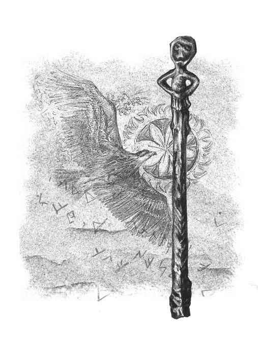 Взяв в руки медный посох и надев железную обувь, Ярила отправился в далекий путь.