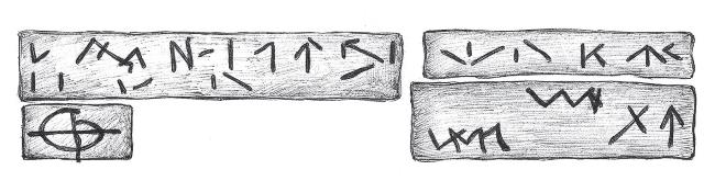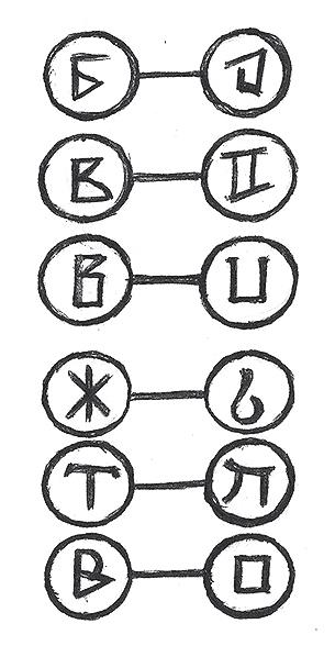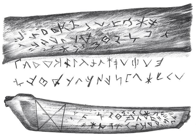 Еще в X веке мудрый восточный путешественник Ибн ан-Надим писал, что русы вырезали на кусках белого дерева, тополя или березы особые письмена. Вот каким образом они выглядели: