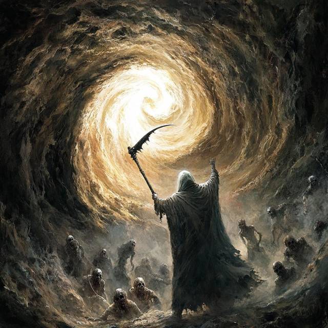 Смерть перехватил свою Косу, развернув лезвием вверх, и начал её медленно вращать над головой. Смысл сего действа от меня ускользал, пока я не переключился на магическое зрения. Оказалось, что эфир, разгоняемый по кругу инструментом Смерти, превратился в некое подобие воронки, уходящий в какие-то неведомые выси.