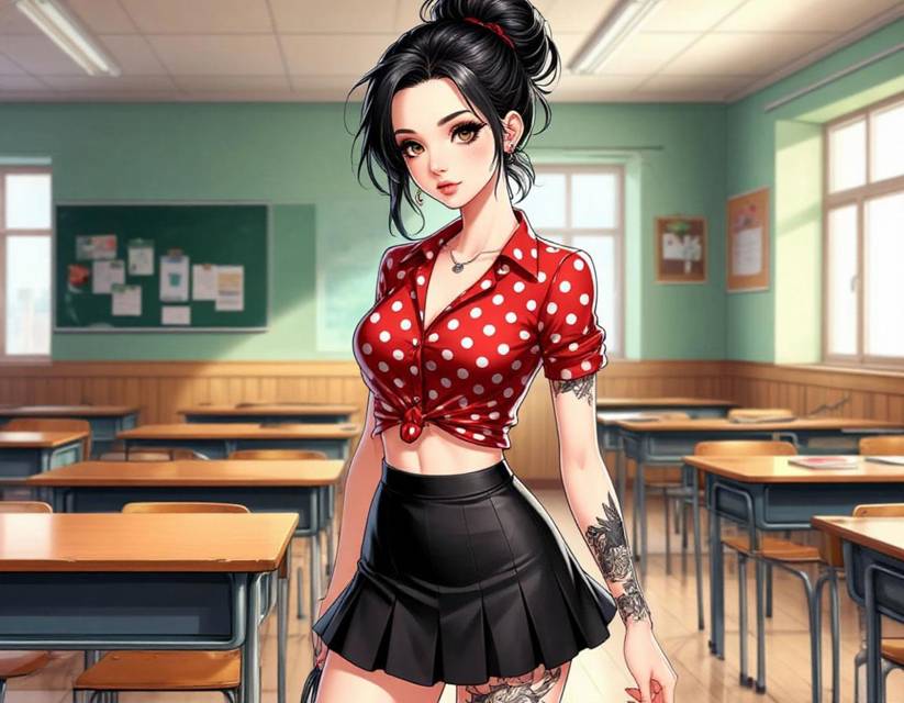 Грекова пришла на установочное занятие в короткой юбке, открывающей шикарные ноги, весьма откровенной короткой рубашечке в мелкий красный горошек, расстёгнутой сверху, и ботильонах на высоком каблуке. Как-то не по-советски всё это выглядело. И да, по бедру красотки змеилась абстрактная татуировка. Копну чёрных волос девушка собрала в небрежный пучок на голове. Грудь третьего размера вот-вот могла вывалиться из декольте. Остальные участники спектакля смотрелись гораздо скромнее.