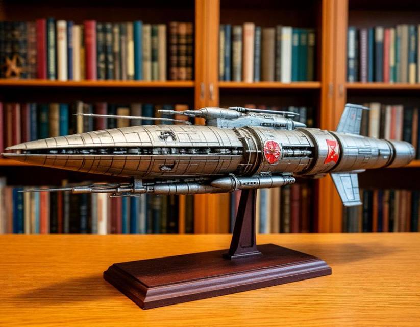 Машина выглядела так, словно сошла с постера «Звёздных войн» или обложки романа в жанре «космоопера». Вытянутый корпус, хищные обводы, множество палуб, крупнокалиберные пушки, ракетные установки, рубка управления и радар… Детализация и размер не позволили дредноуту уместиться на полке целиком, поэтому часть книг хозяева квартиры вытащили.