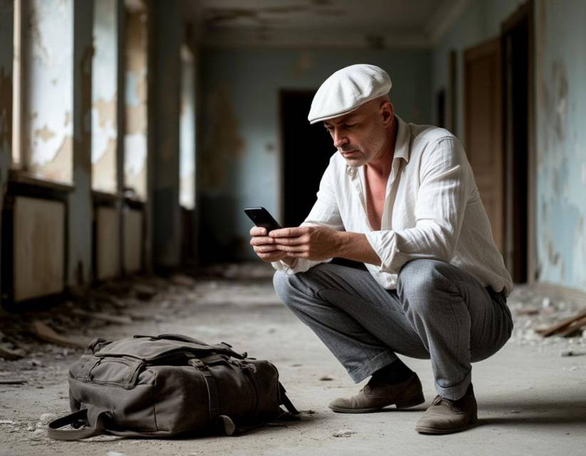 Передо мной на корточках сидел худощавый лысый мужик в серых льняных брюках, белой рубашке навыпуск и такой же белой «шофёрской» кепке. Перед мужиком валялся мой рюкзак. Пистолет лежал на полу, а в руках бандит держал мой «горизонт».