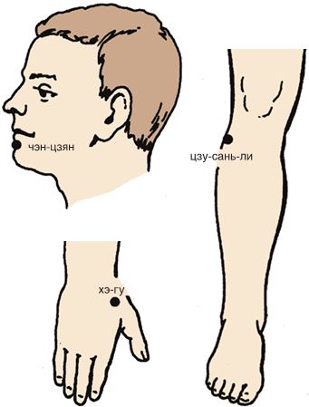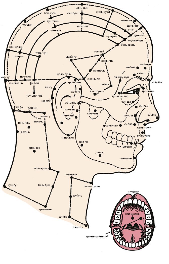 3. Точка-пособник (юань) в каждом из 12 меридианах. Она расположена вблизи тонизирующей или седативной точки и способствует стабилизации того или иного воздействия. Эту точку используют и для диагностирования нарушения функции внутренних органов. Так, при необходимости уменьшить количество протекающей в меридиане энергии, воздействуют на седативную точку, а затем – на точку-пособник.