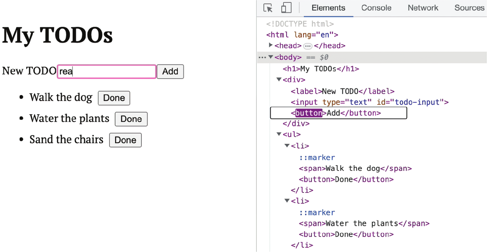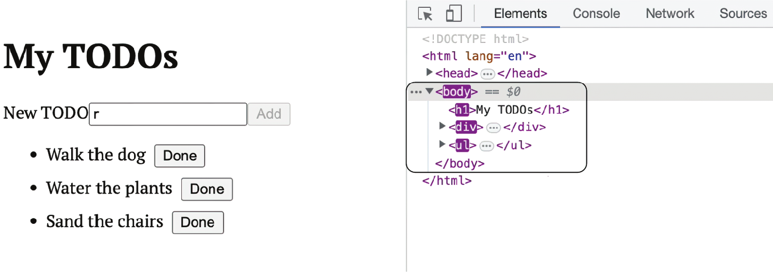 Then the function applies the sequence of operations to the DOM. Figure 9.9 shows the result of applying the first operation to the DOM. Before you look at the figure, can you guess what the result will be? Is it what you expected? Is it correct?