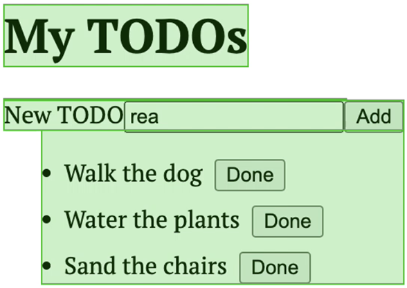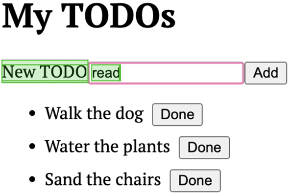 That’s wrong! The problem is that the arraysDiffSequence() calculates the indices of the operations relative to the lists of nodes it receives as arguments, which are the nodes inside the component’s fragment. This list of nodes doesn’t include all the elements below the parent <div> element; it’s missing the first <p> element that’s outside the component’s view. This situation arises from having components whose vdom is a fragment because its elements are inserted into a node that’s outside the component—a host element that might contain other elements external to the component. When the component’s view has a single root element, this problem doesn’t occur (why this is I’ll leave as an exercise for you; the answer is at the end of the chapter).