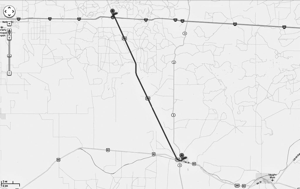 Мы заправились на стоянке грузовиков на пересечении 285 и I-40 (точка В), и мы проехали через Вон и Энсино (точка А), так что между стоянкой грузовиков и Энсино должен быть искомый город. Но я нигде не вижу никакого города ни на обычной карте, ни на спутниковой, где он мог бы отображаться.Мы так и не смогли толком ответить на вопрос, что произошло в тот день. Но я до сих пор отчетливо помню выражение странного беспокойства на лице официантки из-за того, как повели себя мы с братом, помню, как изменился голос бармена, когда он понял, что мы не те, за кого он нас принимал».Synchronauto
