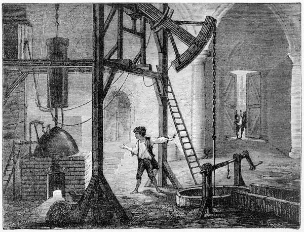 Гемфри Поттер оснащает паровую машину Ньюкомена самооткрывающимися клапанами. Бирмингем (1713)