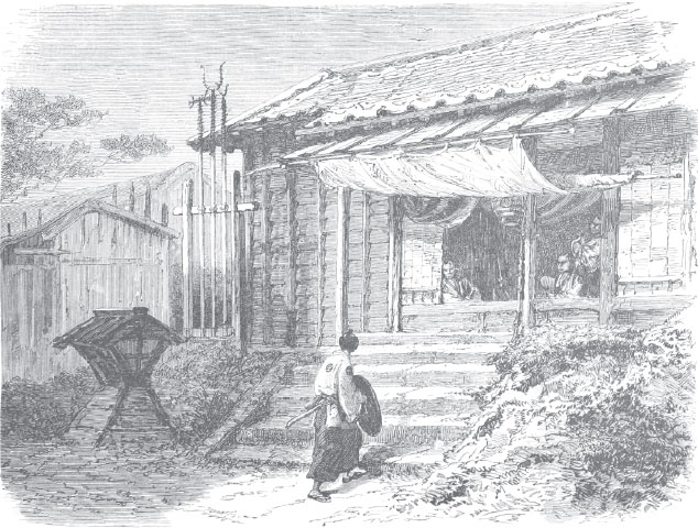 Подготовленный таким образом гость молча подходит к святилищу, и, если это самурай, то он оставит свой меч на решетке под стропилами, ибо чайная комната являет собой обитель мира. Затем он низко наклонится и буквально вползет в комнату через маленькую дверь высотой не более трех футов. Эта процедура являлась обязательной для всех гостей, как знатных, так и простолюдинов, и служила тому, чтобы призвать человека к смирению. Согласно порядку старшинства, о котором договорились заранее, во время отдыха в макиаи, гости один за другим бесшумно входят и занимают свои места, но сначала выражают почтение картине или цветочной композиции на токонома. Хозяин не входил в комнату, пока все гости не рассаживались по местам и не воцарялась тишина, которую ничто не нарушит, кроме звука кипящей воды в железном котелке-чайнике. Котелок будто поет, потому что пластинки железа так расположены на дне, что производят своеобразную мелодию, в которой можно услышать эхо водопада, окутанного облаками, шум далекого моря, разбивающегося о скалы, грохот ливня, проносящегося через бамбуковую рощу, или шелест сосен на каком-то неведомом холме.